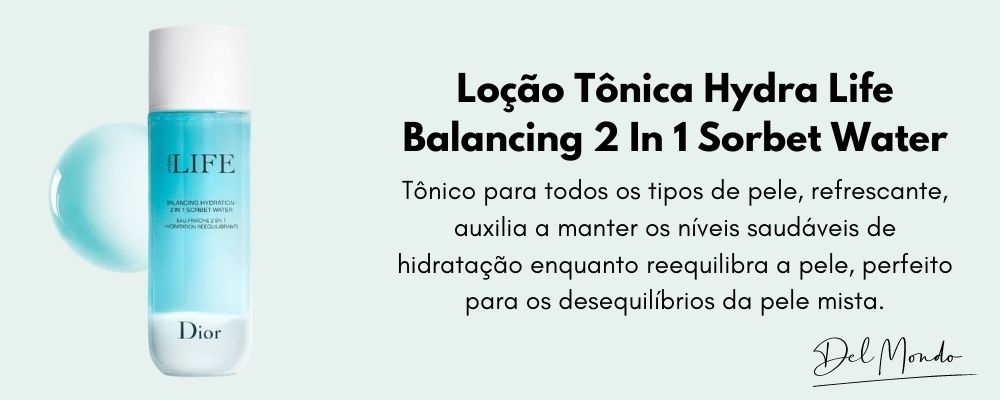 Loção Tônica Hydra Life Balancing 2 In 1 Sorbet Water é um tônico para todos os tipos de pele. Ele refresca e auxilia a manter os níveis saudáveis de hidratação enquanto reequilibra a pele, perfeito para os desequilíbrios da pele mista.