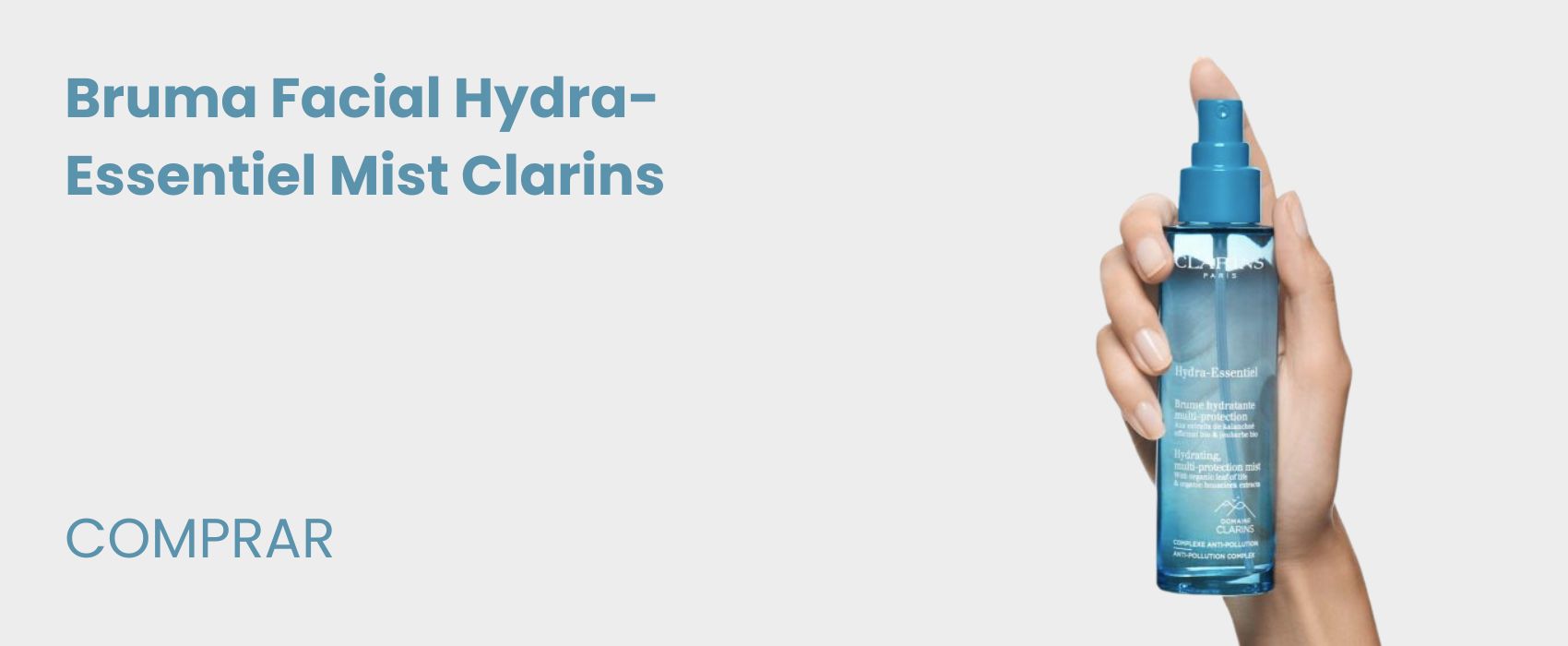 Hydra-Essentiel Mist de Clarins bruma facial super hidratante que deixa a pele radiante, preenchida e protegida dos efeitos dos estressores ambientais.