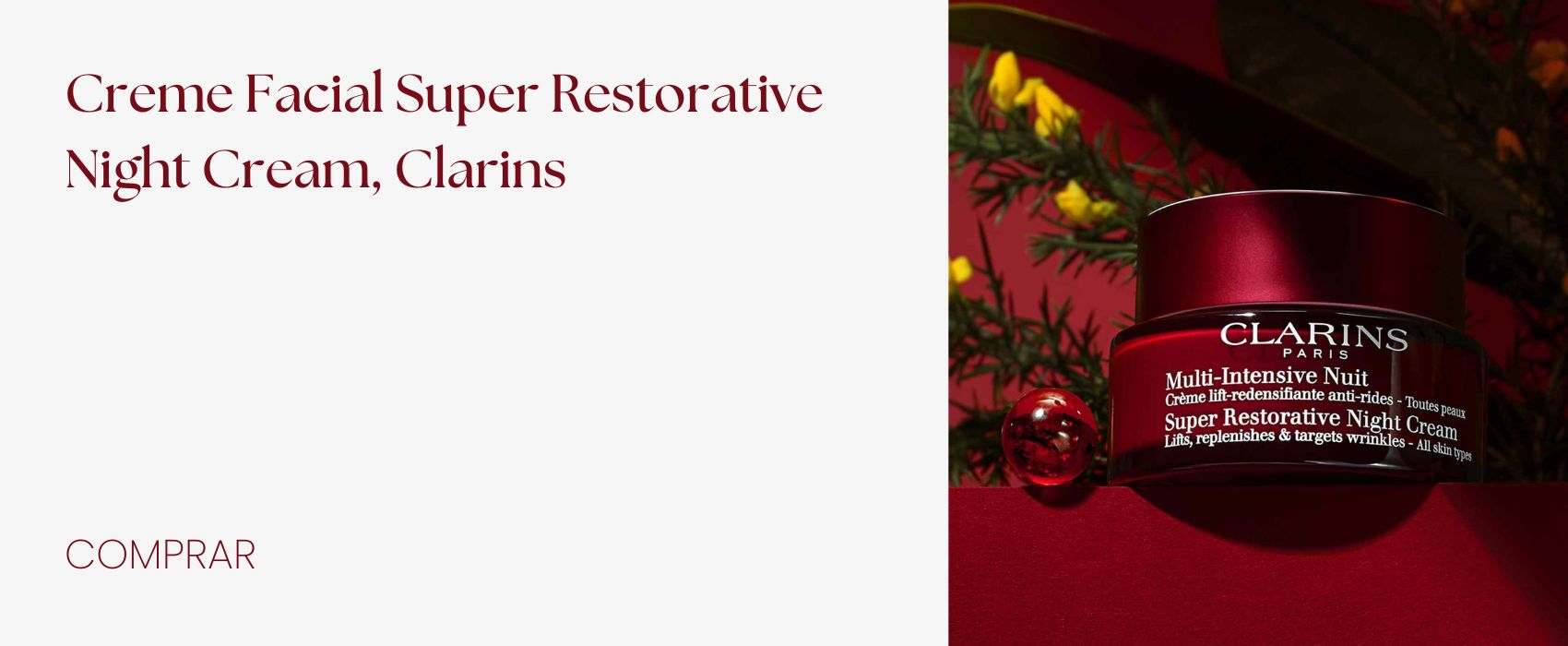 Clarins Super Restorative Night possui fórmula dermatologicamente testada e não-comedogênica, que deixa o rosto com a aparência mais jovem e radiante noite após noite.